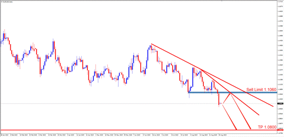备选策略:稳健投资者可选择1.1060支撑阻力转换位附近挂单SellLimit。