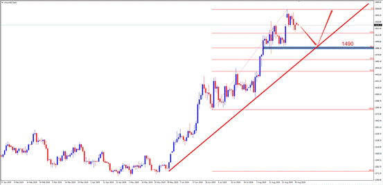 备选策略:稳健投资者建议保持顺势交易,可选择在1490附近挂单BuyLimit。