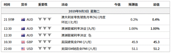 市场普遍预期9月3日澳洲联储将会把现金利率维持在1%,但是意外降息的可能性仍不容忽视。尽管在经历了6月和7月背靠背式的降息后目前市场的信心有所回升,但是该国目前所面临的经济风险依旧高企,因此9月和10月存在进一步的宽松的可能。分析人士认为,如果澳洲联储选择花更多的时间来衡量之前宽松政策的影响,那么澳洲联储可能会推迟至11月,并且在12月选择进一步降息。