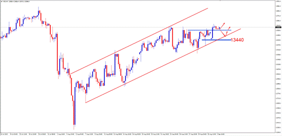 交易策略:激进投资者可尝试于13440附近做多,止损13340附近,止盈13600附近。
