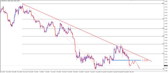 交易策略:建议投资者可考虑1.2125附近做空,止损1.2200附近,止盈1.2000附近。