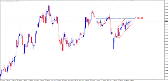 技术点评:H4周期中,价格冲高回落,短线或持续试探1.3310水平支撑位,整体走势仍保持多头形态。
