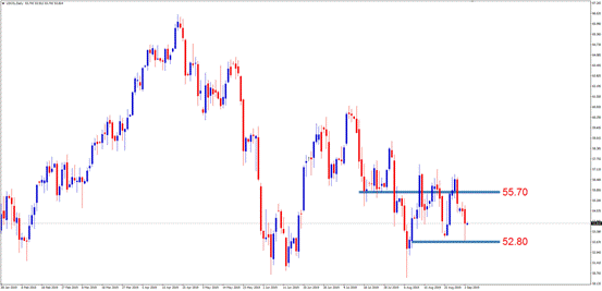 交易策略:激进的投资者可考虑52.80-55.70区间高抛低吸,止损100点左右,目标200点左右。