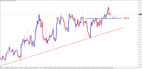 交易策略:激进投资者可尝试于1.3310附近做多,止损1.3280附近,止盈1.3420附近。