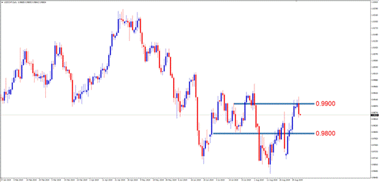 交易策略:激进的投资者可考虑0.9800-0.9900区间高抛低吸,止损60点左右,止盈80点左右。
