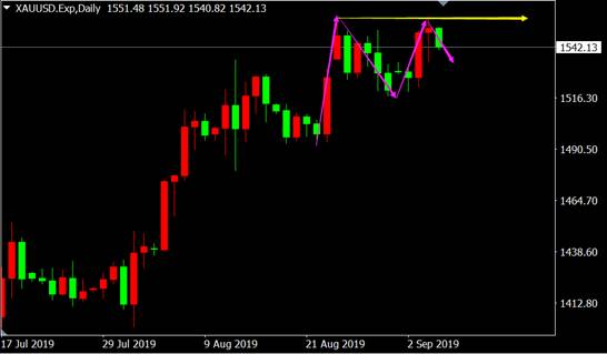 从国际黄金日线图来看,价格两次上冲都没有突破新高并形成平头顶看跌K线形态,多头行情将暂告一个段落,行情将延续震荡趋势,多头应及时获利了结。