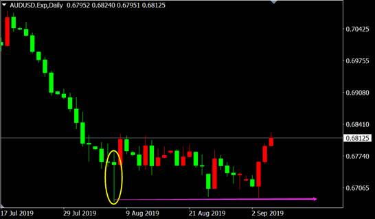 从澳元兑美元日线图来看,价格测试前期锤子线低点成功,反弹行情再度开启,多单可以考虑介入。