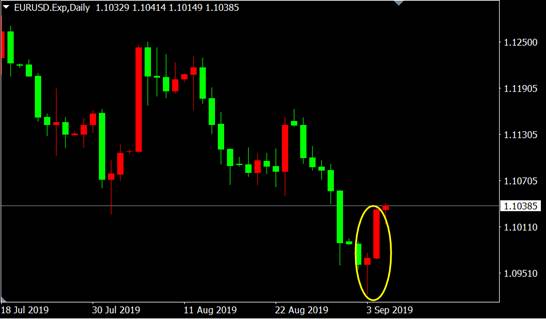 从欧元兑美元日线图来看,行情沿下跌趋势末端出现早晨之星看涨K线形态,反弹行情即将开启多单可以考虑介入。