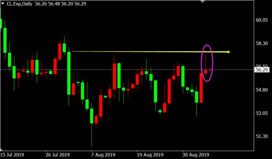 56.50附近做空,止损56.80,目标56.00