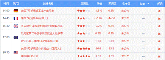 风险预警:今天20:30将公布8月非农就业报告,当前市场预期新增15.8万人,不及前值16.4万人。尽管如此,昨日小非农数据表现意外强劲,一定程度上增强了市场对非农报告的信心。若数据好于预期,黄金将进一步下挫。