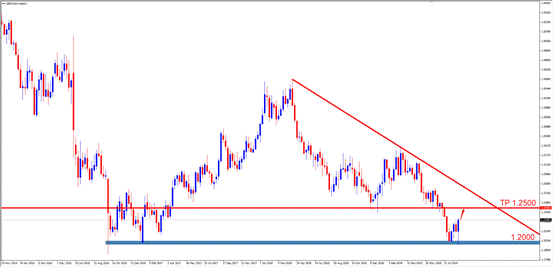 技术点评:W1周期中,英镑测试2016年低点强支撑位,短期多头强势反弹,本周大概率继续上探测试1.2500附近。