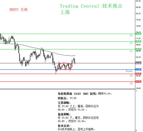 昨日美国EIA的每周石油市场报告宣布美国商业原油库存减少690万桶,远高于预期的260万桶。通常原油库存降幅超预期通常会提振原油价格,但对全球能源需求前景黯淡的担忧限制了油价走高。欧佩克在早些时候在月度报告中表示,由于全球经济放缓,将2020年全球石油需求增长预期下调至108万桶/日。日线在昨日收线形成黄昏之星,但由于汇价并非是新高且上方为200周期均线,因此目前原油可能只是暂时回调,关注前期震荡区间上沿的60.46是否能有效支撑住下跌。