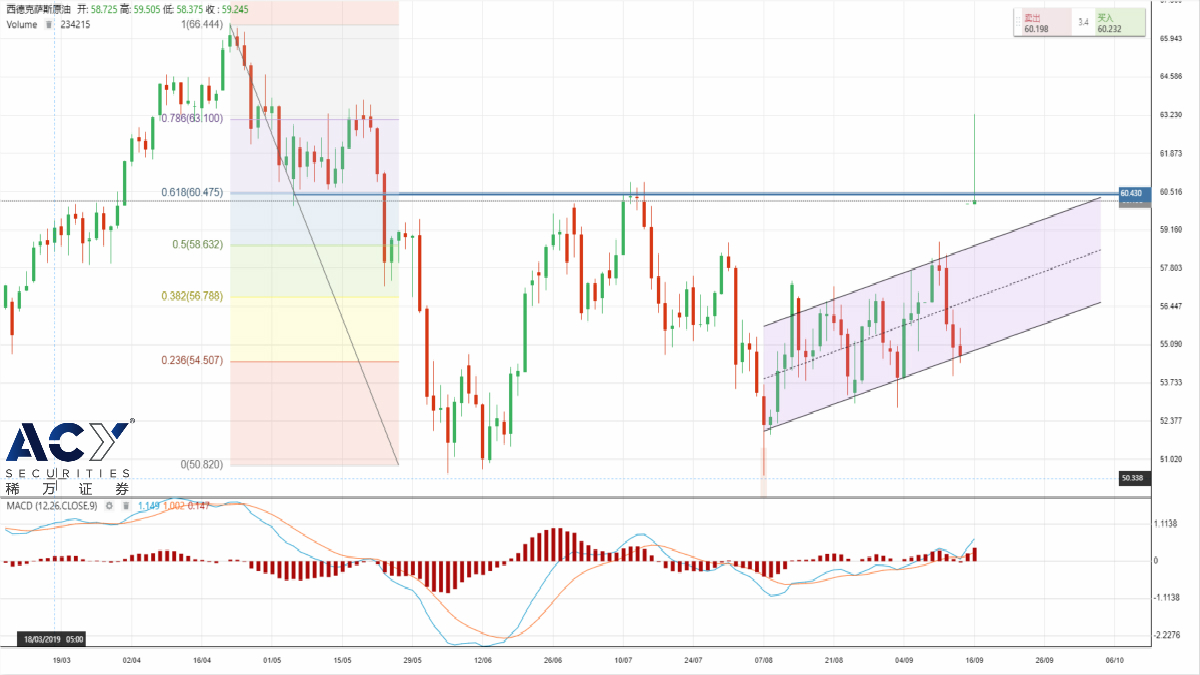 9月16日,美原油开盘跳涨约15%,升破60关口,最高触及63.34美元/桶。上周六,全球最大石油企业沙特阿美两处石油设施受到无人机攻击后起火,受影响的炼油厂产出占沙特当前产油量的一半,这为油价提供了强劲的上涨动力。