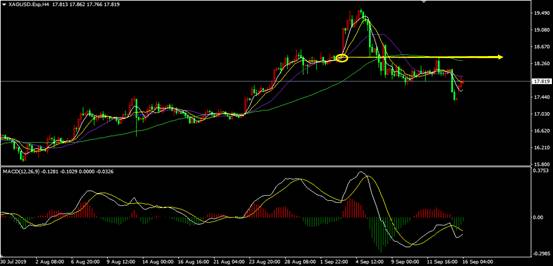 从白银4小时图来看,白银上周五的下跌出了新低,而且之前反弹也未对前方高点有任何突破,短期还是压力为主。