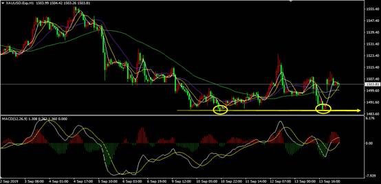 从国际黄金1小时图来看,黄金今天早上的跳空向上再确立一个低点,现在两个低点构成双底,后市大概率要上破颈线,甚至再冲击前高,今天可以15分钟以下级别找下跌背驰接多。