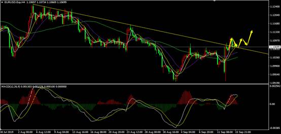从欧元兑美元4小时走势来看,欧元兑美元形态上已是趋势线上破,下方还有双底,现在回踩正是接多时机。