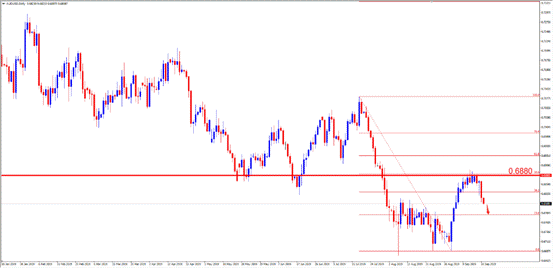 技术点评:D1周期中,澳美触底反弹测试50.0%回调位后被空头压制,今日恐继续回落。