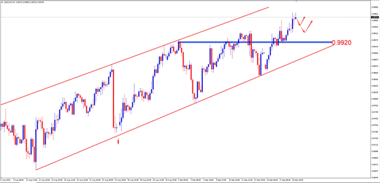 技术点评:H4周期中,美瑞形成上行通道爬升走势,短期承压于0.9945前期高点,回调可继续尝试做多机会。