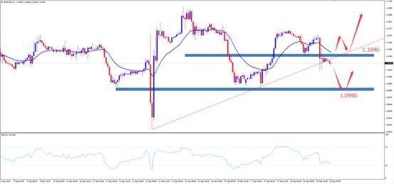 交易策略:投资者可考虑回调支撑位1.0990附近做多,止损1.0950下方,止盈1.1050附近。