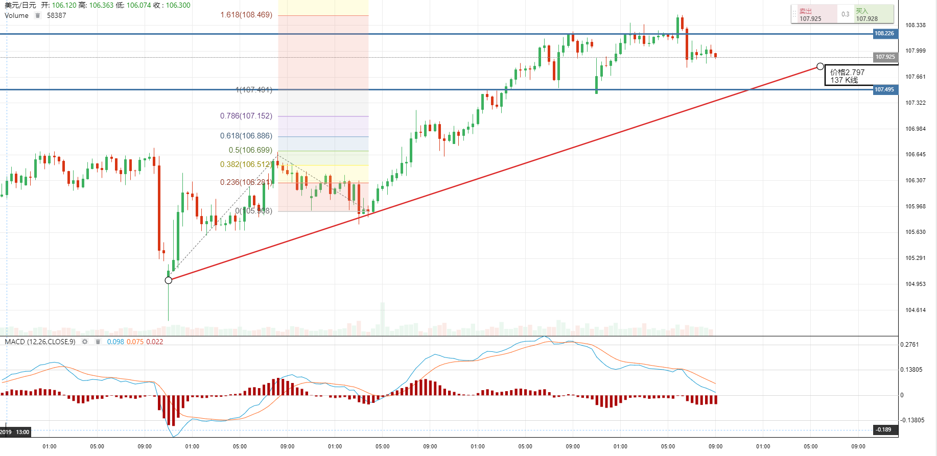 3、美日汇率下挫,回调需求指向107.50水平,中线多头格局未受影响