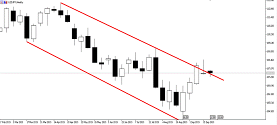全球贸易紧张局势出现缓解,加上美国ISM非制造业指数积极,油价近期出现较大波动,使得日元上涨动能耗尽。但若日本央行跟随欧洲央行、美联储实施宽松政策,料日元将走强,美-日国债收益率息差将持续下降,美元/日元料将下跌,美元/日元或将跌破100或以下。上周美元/日元未突破108水平,并走出倒锤头线,受阻于上周高点108,或将跌破105水平。若汇价跌破104.50区域将下看99。