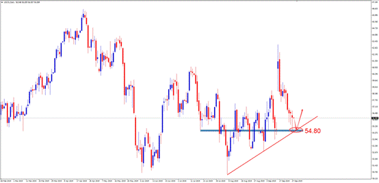 交易策略:激进的投资者可考虑54.80附近做多,止损53.80左右,目标56.70左右。