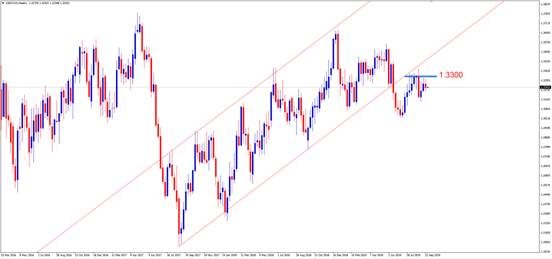 交易策略:投资者可考虑1.3300附近做空,止损1.3350附近,止盈1.3200附近。