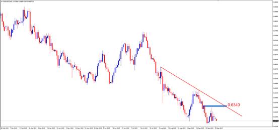 交易策略:建议投资者可考虑0.6340附近做空,止损0.6400左右,目标0.6240左右。