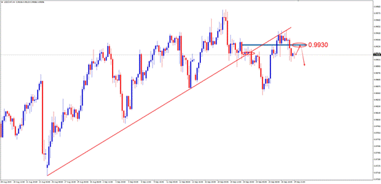交易策略:建议投资者可考虑0.9930附近做空,止损0.9985左右,目标0.9850左右。