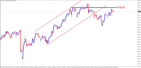 交易策略:激进的投资者可考虑108.20附近做空,止损108.70附近,目标107.00左右。