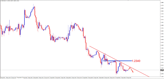 交易策略:短线投资者可尝试于1.2340附近做空,止损1.2400附近,止盈1.2200附近。