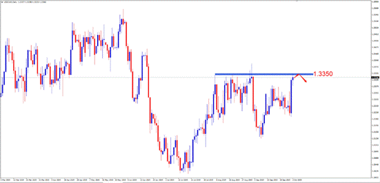 交易策略:激进投资者可尝试于1.3350附近做空,止损1.3400附近,止盈1.3250附近。