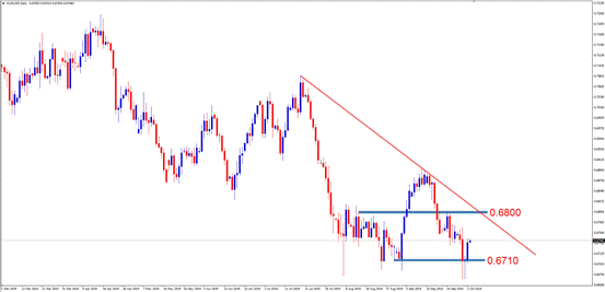 交易策略:激进的投资者可考虑0.6710附近做多,止损0.6660左右,目标0.6800左右。