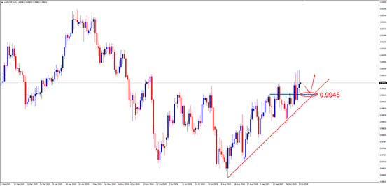 交易策略:激进的投资者可考虑0.9945附近做多,止损0.9900左右,目标1.0030左右。