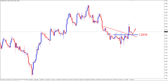 交易策略:短线投资者可尝试于1.2310附近做多,止损1.2250附近,止盈1.2410附近。