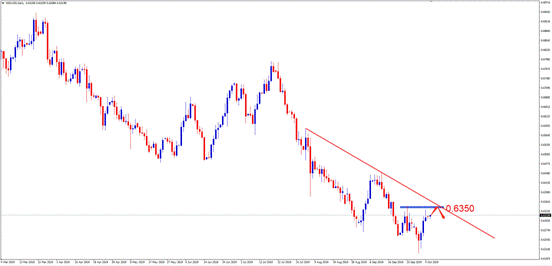 交易策略:建议投资者可考虑0.6350附近做空,止损0.6380附近,目标0.6230附近。