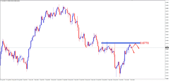 交易策略:激进的投资者可考虑0.6770附近做空,止损0.6810附近,目标0.6700附近。