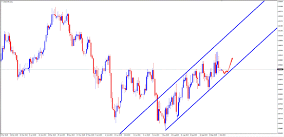 技术点评:D1周期中,美元兑瑞郎沿震荡通道稳步爬升,后市依然保持逢低做多思路。