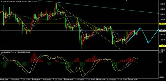 1492附近做空,止损1496,目标1485。