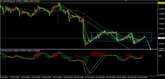 从美元兑加元1小时走势来看,美元兑加元接下来极可能还要再次回踩趋势线,盘整现在来看很难做底,未来的底有可能是要在新低中把空头耗尽。