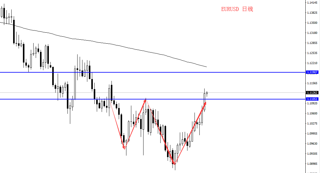 欧元昨日强势破位1.1105一带阻力位,日线形成w底部形态,目前欧元也同样受脱欧消息影响,导致亚盘及欧盘前期处于窄幅震荡走势,关注欧盟峰会是否会进一步传出关于脱欧进程的消息。