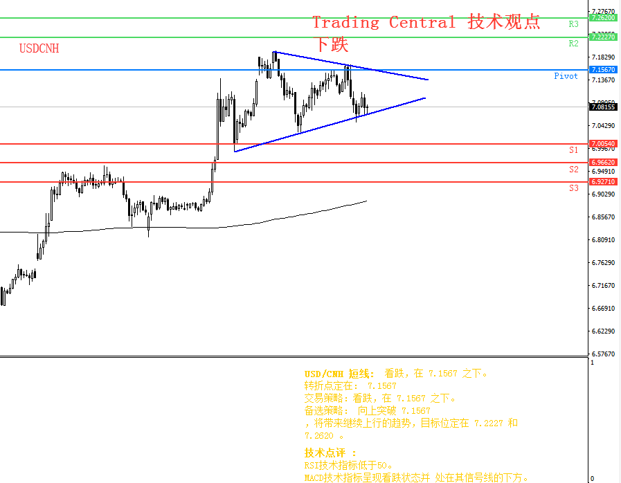 虽然本次GDP数据不及预期,但离岸人民币波动不大,行情上能看出目前离岸人民币受阻于中枢轴,处于收敛三角形区间内。关注收敛区间是否有效导致美元兑离岸人民币走出短期上升趋势。