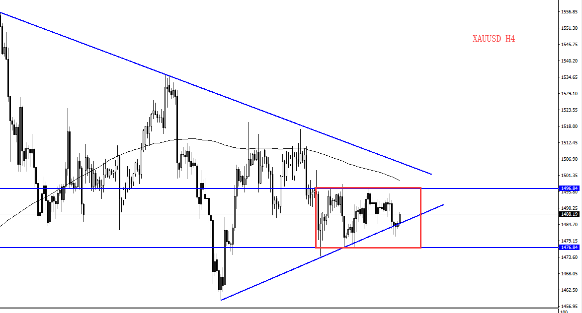 黄金持续处于震荡区间,亚盘在测试上行趋势线后反弹上行,关注箱体震荡区间的上沿是否会有效受阻,黄金目前已经震荡了较长周期,等待交易机会出现。