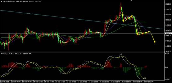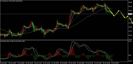 从WTI原油1小时图来看,原油随着前面的力度减弱,昨天一波下跌表现强势,接下来就是调整下跌为主,前面的浪形走的很复杂,后面相对也会复杂。