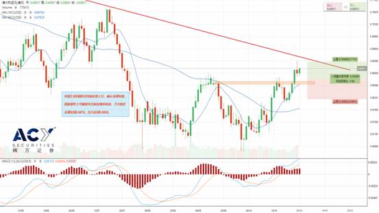 11月1日(周五),昨日美国众议院投票通过对特朗普的弹劾调查程序,避险情绪再度升温,商品货币集体疲软,澳元兑美元昨日冲高回落,收于0.6894。今早亚盘时段澳美低开高走,涨0.20%,暂报于0.6908。