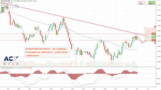 11月5日(周二),因澳央行即将公布货币政策决定,多头大幅减仓,澳元兑美元昨日收阴线,跌穿0.6900整数关口,收于0.6884。今早亚盘时段澳美低开震荡,跌%0.01,暂报于0.6883。