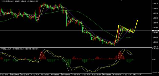从美元兑加元4小时走势来看,美元兑加元目前的上涨就是对前方下跌的反弹,短线上最近两段多空比较,明显是多头强势,也就是后市至少还会有一波反弹,所以美加可再做多。