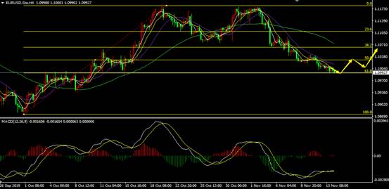 1.0990附近做多,止损1.0960,目标1.1050。