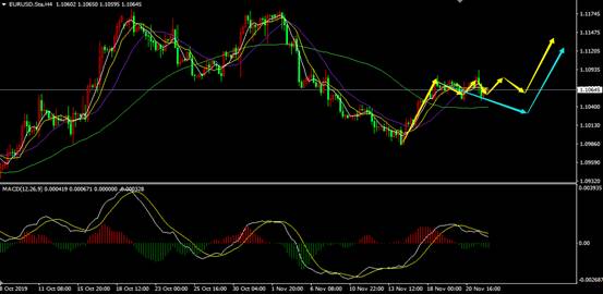 从欧元兑美元4小时走势来看,欧元兑美元现在还是横盘调整和下跌调整两种预期,不过现在看更接近横盘调整,之前若是有做空,可趁现在横盘保本出场,后市做多待涨。