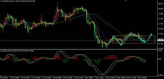 从白银4小时图来看,白银最近的上涨和下跌一直幅度有限,现在的下跌波段只会加长中枢延伸,周线预期中的三买确认开始大五浪还需要更多时间。